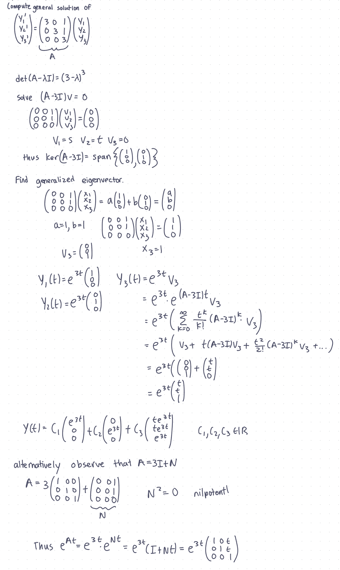 Turns out there is a shortcut through using a decomposition into identity and nilpotent matrices that save a lot of work.